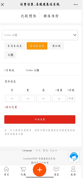 Buddy mobile phone buddy mobile phone will be asked how to operate, in fact, the phone end is also the same. First, we can focus on a public number of our shipping company. When the small partners enter the official account, they can see the freight estimate on the front page. At this time, small partners in need can click in to .accurate valuation, .the destination country to be sent, and enter the shipment information, as shown in the figure below